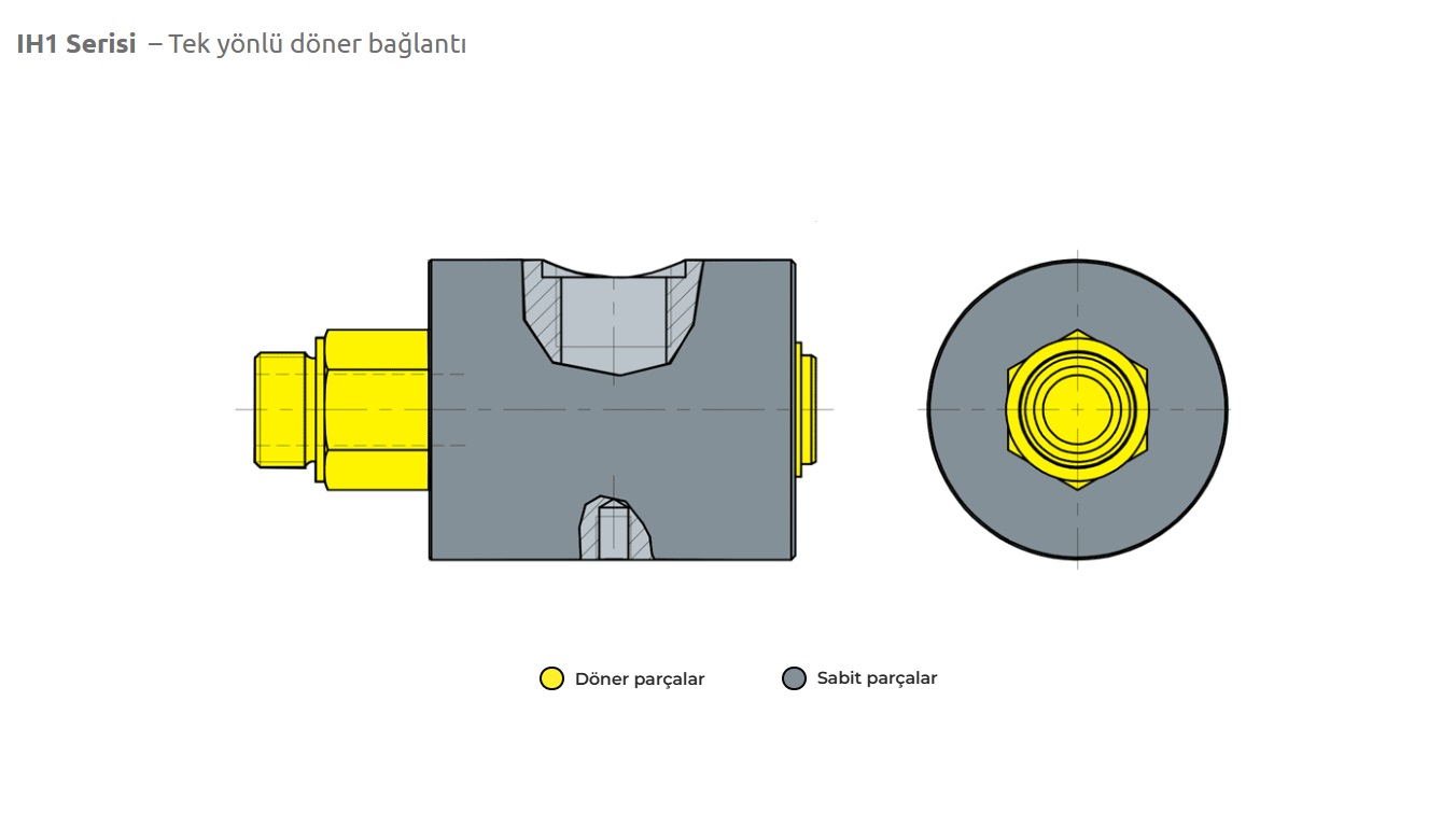 IH1 serisi Döner Bağlantı Elemanları 350 bara kadar basınca dayanacak şekilde tasarlanmıştır.