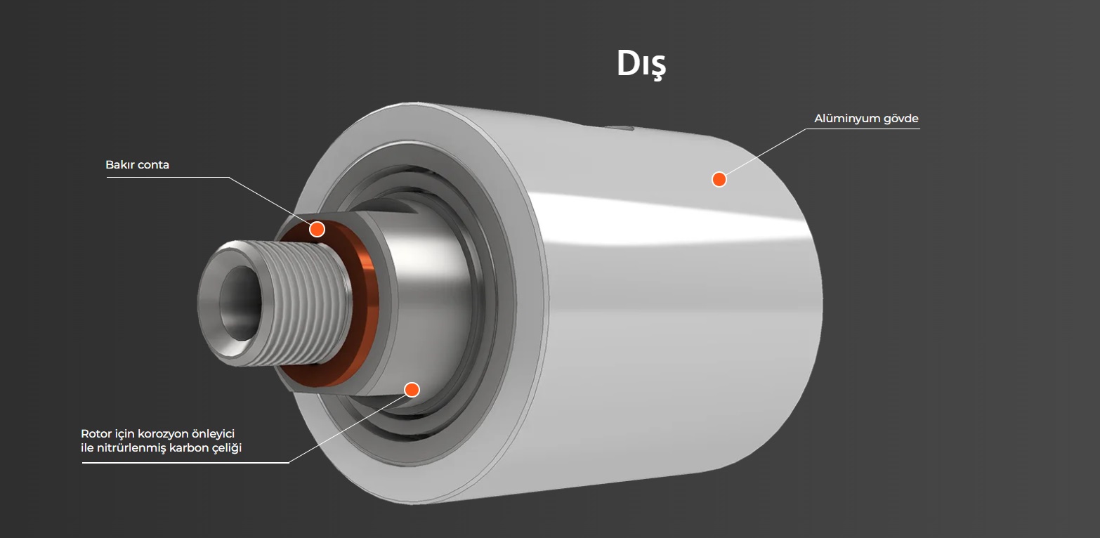 - Rotor korozyon önleyici işlem ile nitrürlenmiş karbon çeliğindendir.