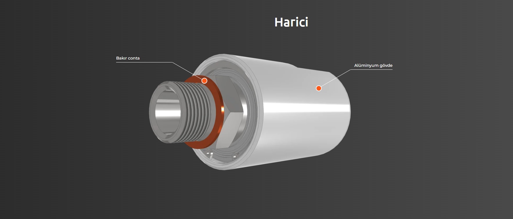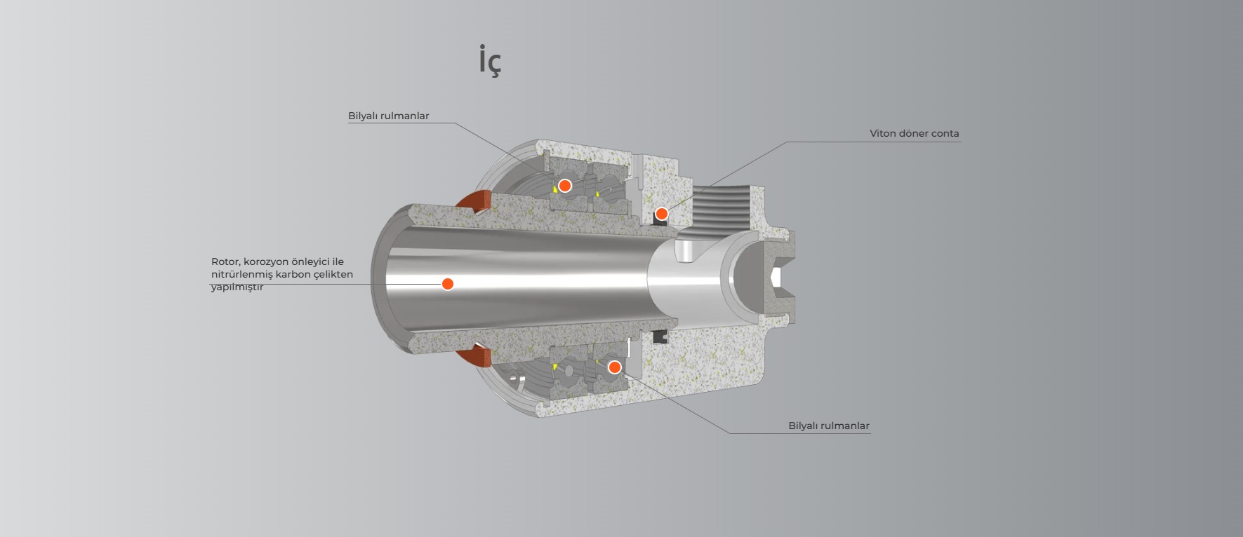 Döner kısmın yapı malzemesi anti-korozyonla sertleştirilmiş karbon çeliğidir; sabit dış kısım ise eloksallı alüminyumdan imal edilmiştir.