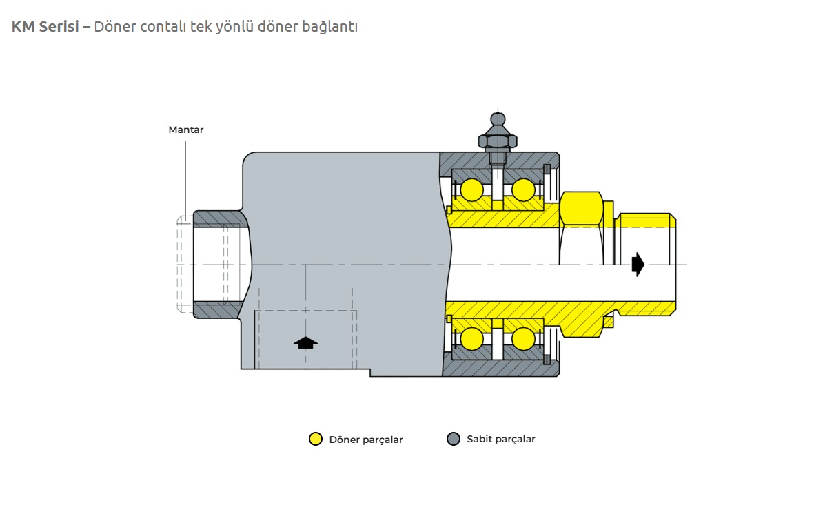K serisi Döner Bağlantı Elemanları 70 bara kadar basınca dayanacak şekilde tasarlanmıştır.