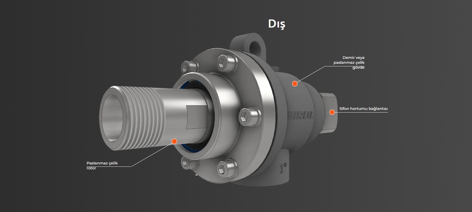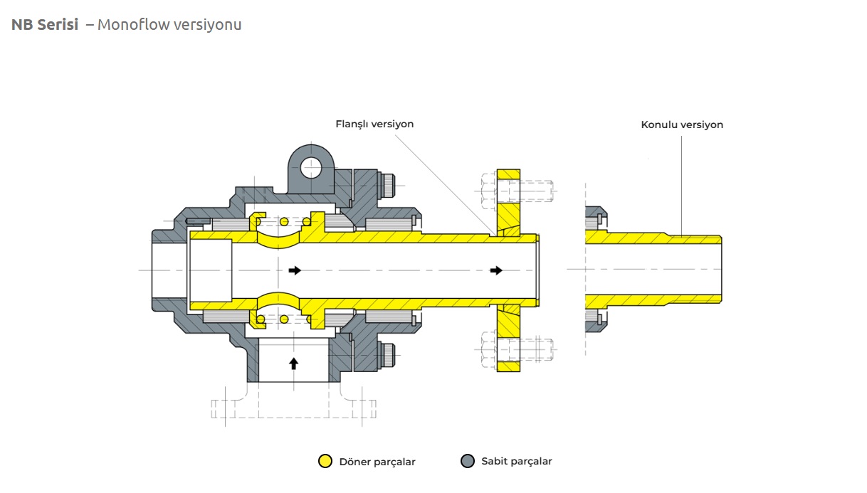 Gövde , sıvı girişİ ve çıkışı için boruların bağlanacağı 1 veya 2 yoldan oluşabilir. Rotor hem dişli hem de flanşlı versiyonda mevcuttur. Gövde silindirik BSP dişe sahipken, döner kısım olan şaft konik BSP dişe sahiptir. İhtiyaçlara göre farklı standartlarda (NPT, metrik, vb…) diş açma sağlıyoruz.