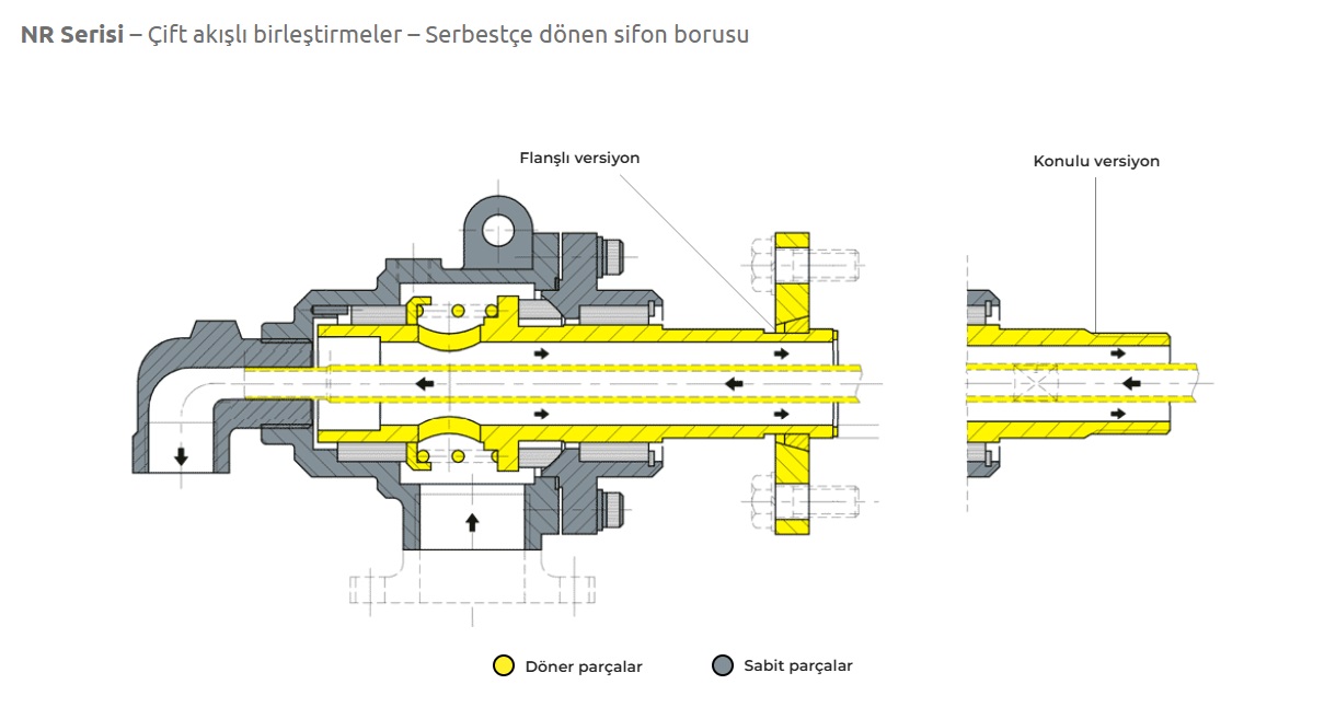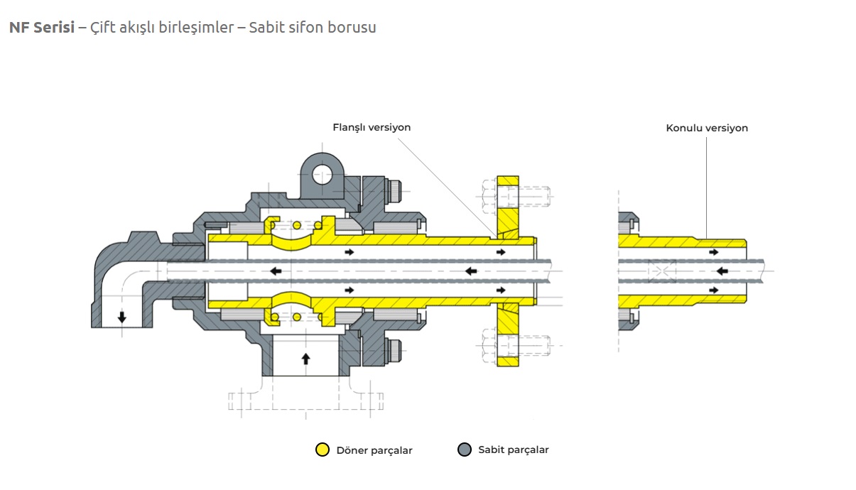 N serisi Döner Bağlantı Elemanları , buhar , sıcak yağ veya su gibi yüksek sıcaklıktaki akışkanların geçişi için tasarlanmıştır . Esas olarak kauçuk, kağıt ve tekstil endüstrilerinde kullanılırlar ancak çeşitli üretim sektörlerine de uyum sağlayabilirler.