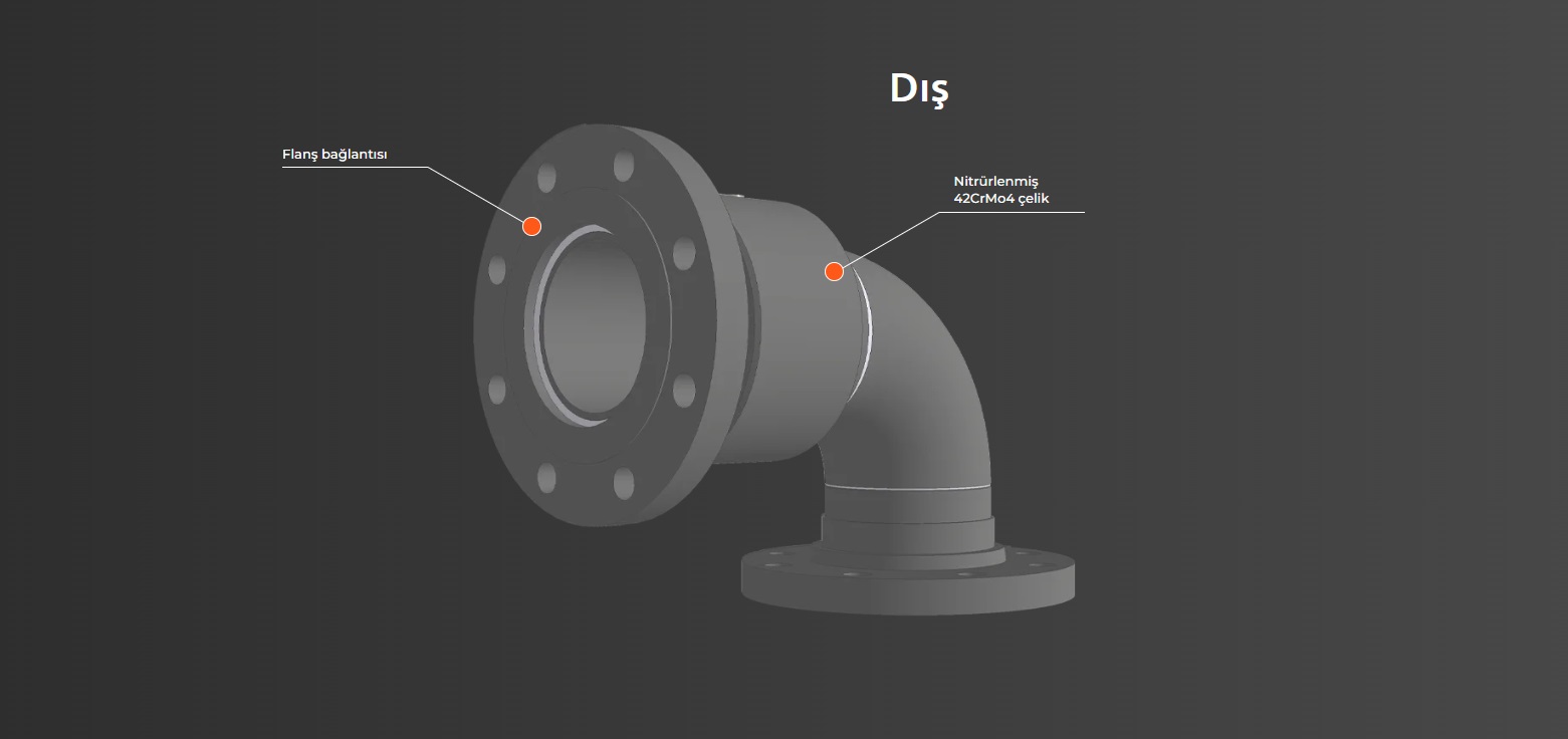 Bağlantısı, nadir meydana gelen dönüşleri telafi etmek için bir hortum tertibatı ile makinenin sert bileşeni arasına yapılır.