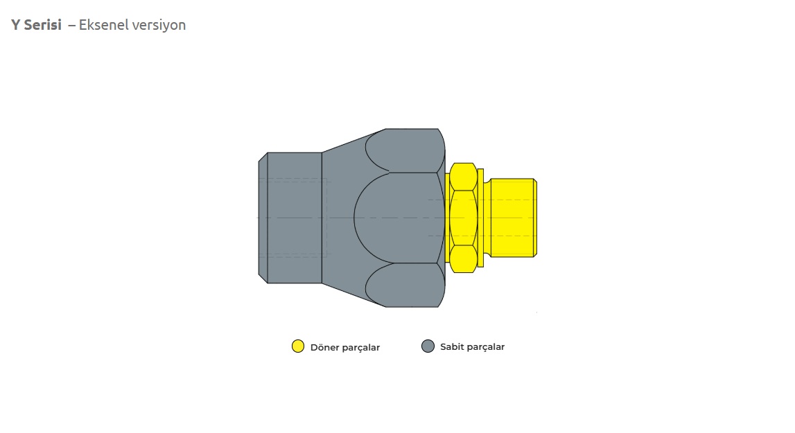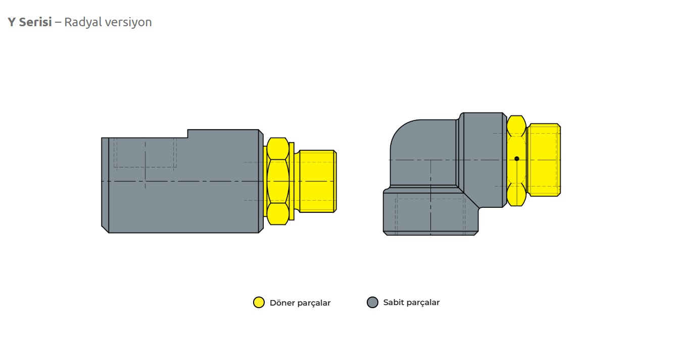 Y Serisi rotary joint , hareketli esnek hortumların bulunduğu tüm endüstriyel makinalarda kullanılır.